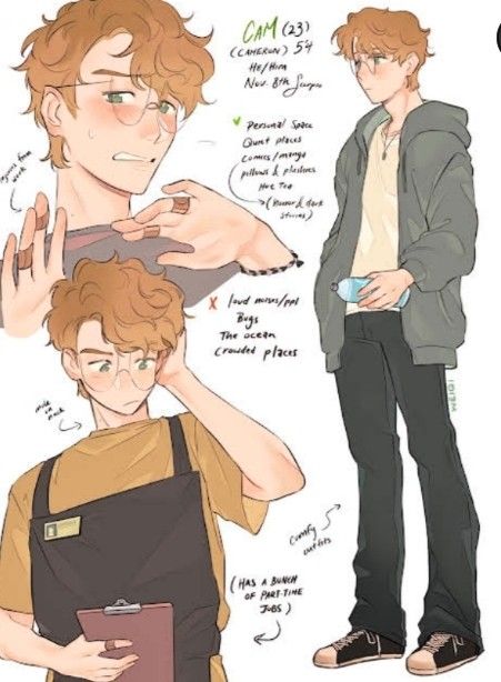 Name: Cameron "Cam" Calloway | Age:15 | Parent: Hebe | Camp: Camp Half-Blood Cabin 18 | Appearance: Curly light-blond hair that falls over his forehead in soft waves Tan skin soft green eyes behind round glasses fair slim, 5'7" cute, camp shirt under hoodies | Personality: Gentle, kind, observant, fragile in relationships | Weapons: Aeturnum-unbreakable celestial bronze dagger | skills: High stamina rapid fatigue recovery minor healing touch boosts others energy morale | Backstory: Worked part time to help his family Arrived at 15 | Love Interest: Bianca di Angelo – quiet, shy, gentle, and brave; leans toward loyalty and independence. Cam admires her calm strength